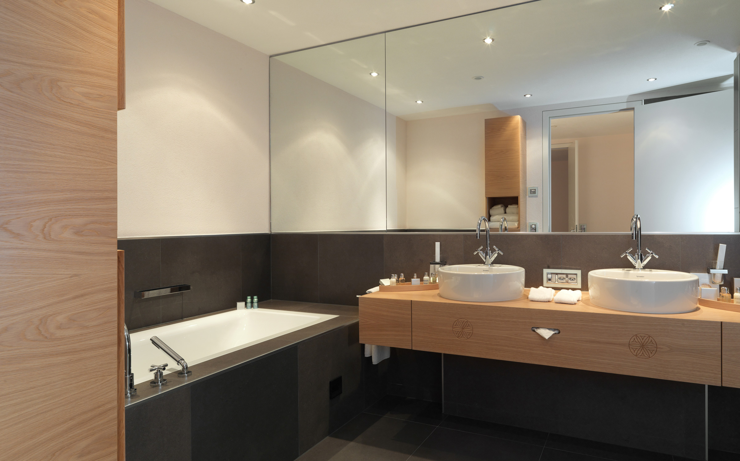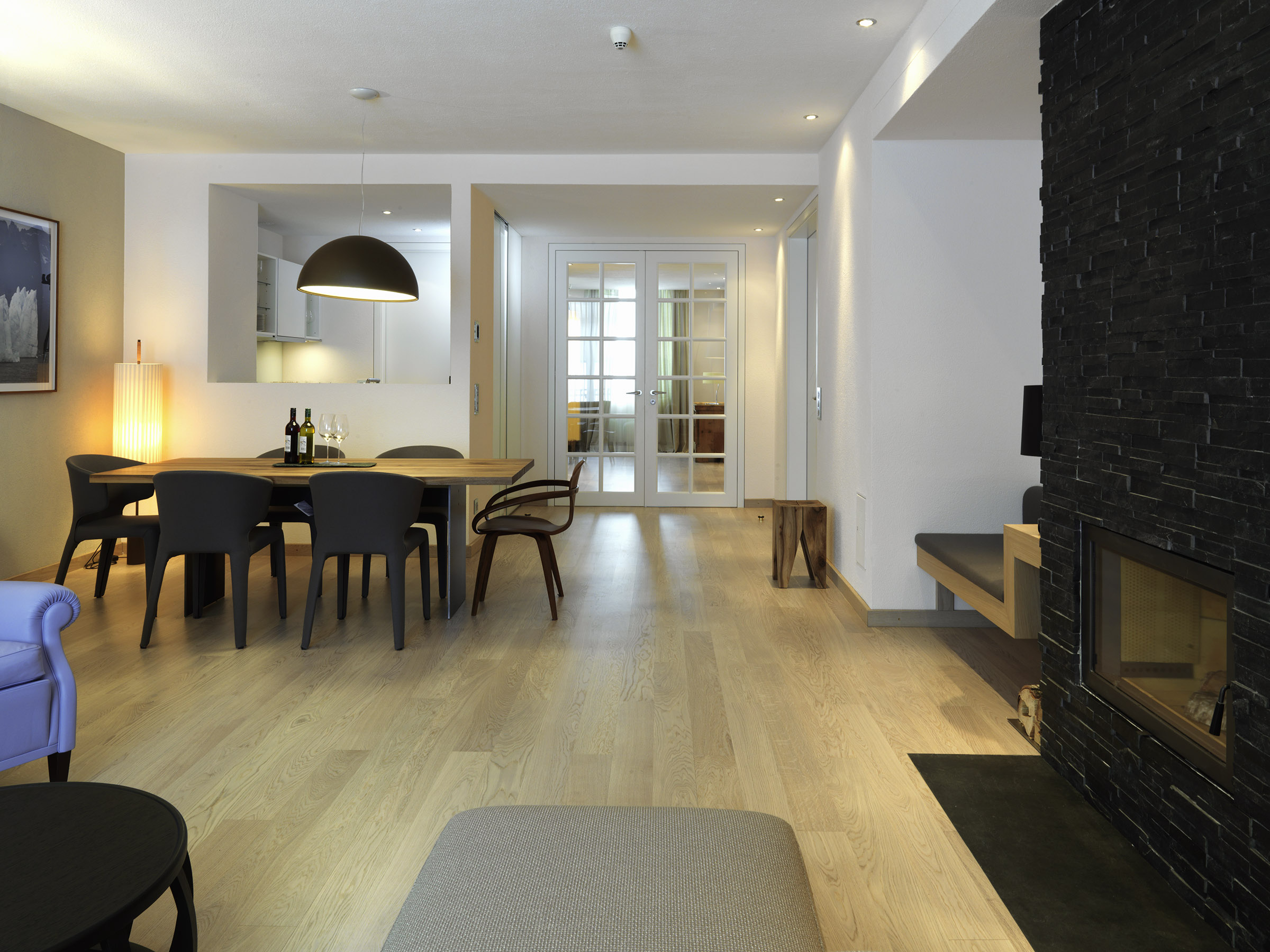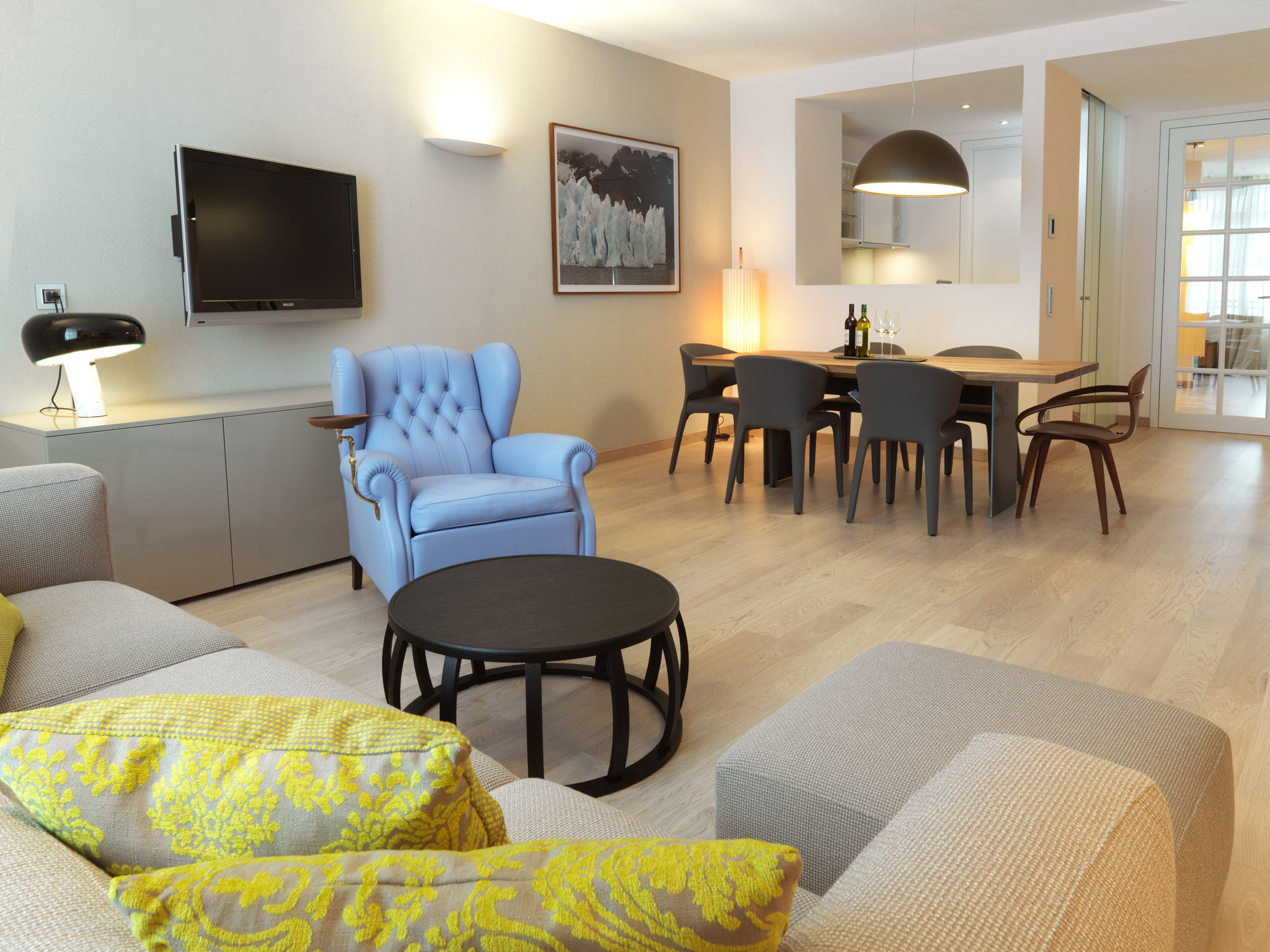 Fifteen new luxury apartments with a floor space of between 170 and 500 m² have been designed for the Kempinski Residences in St. Moritz. The private domiciles consist of generous living areas with direct access to terrace or garden, and up to four bedrooms with walk-in closets and luxuriant bathrooms. The silhouettes of the mountain “Corvatsch” can be found as a leitmotif cut into doors, on bespoke upholstery and carpets, and as graphics on glass walls. Understated elegance blends into the alpine setting and creates a modern but comfortable atmosphere.
