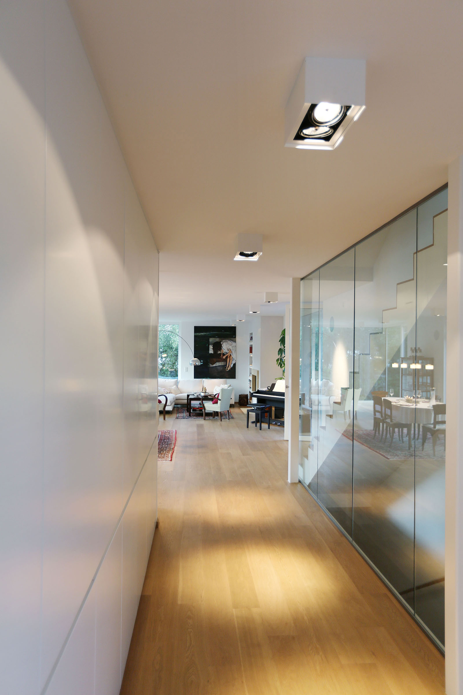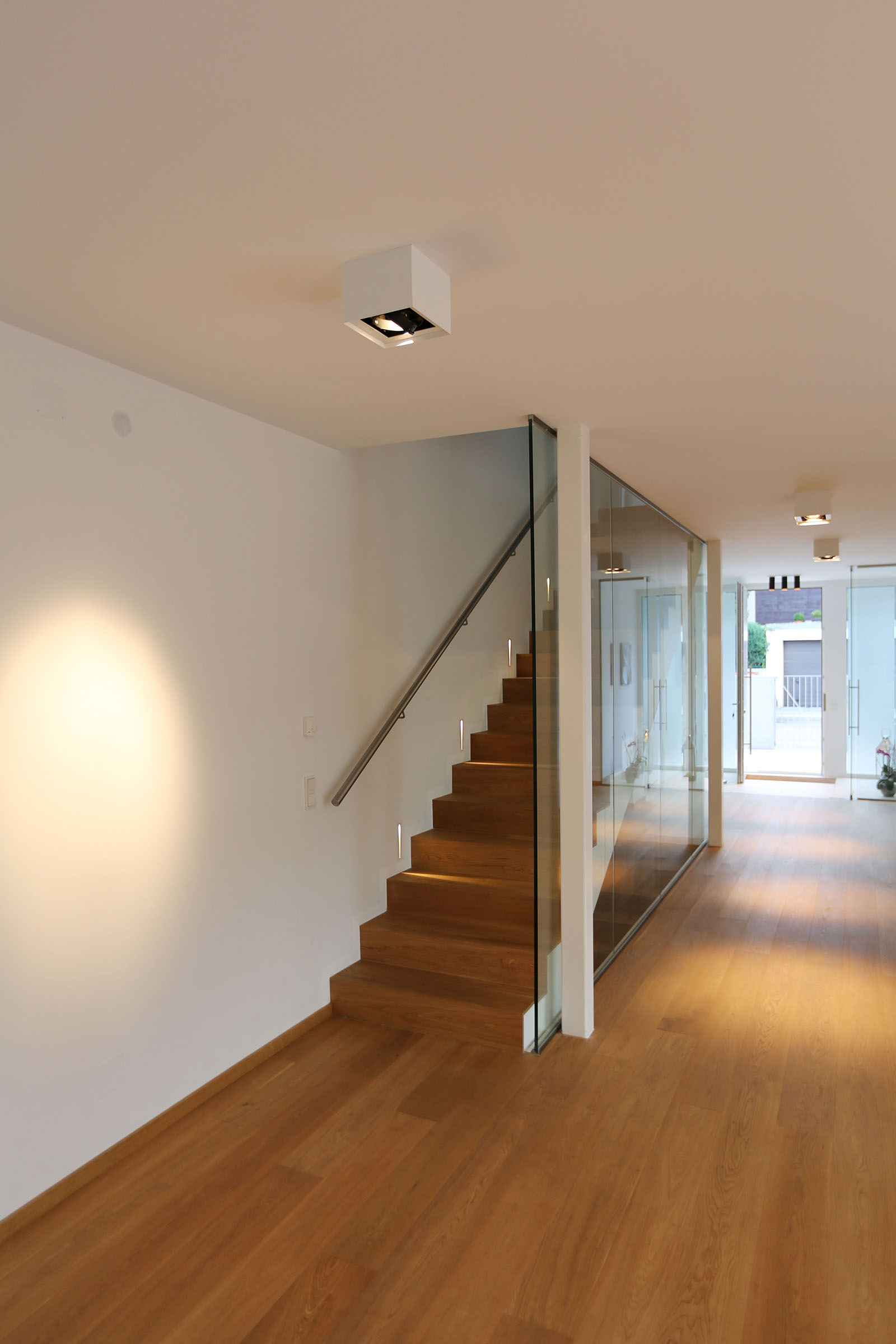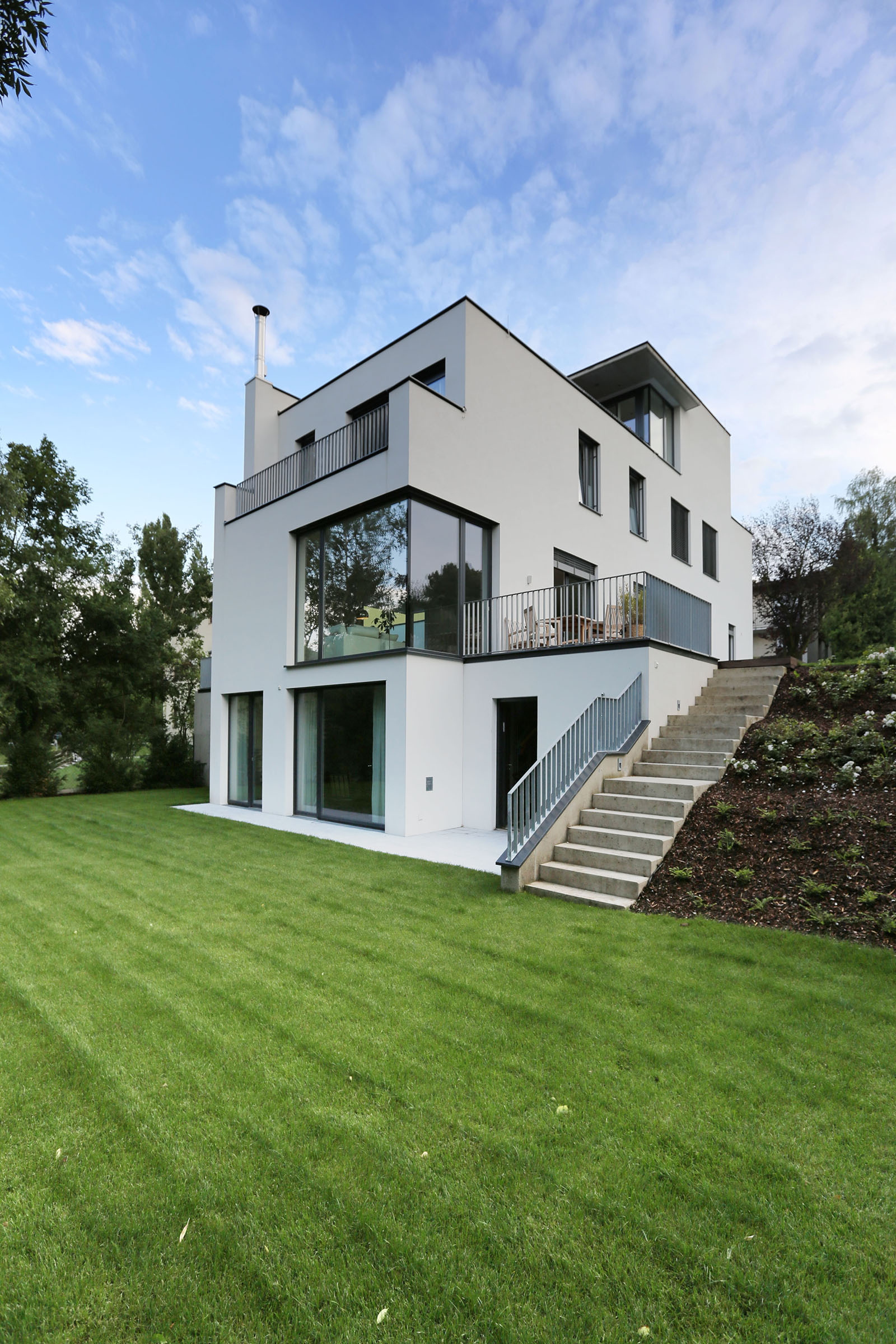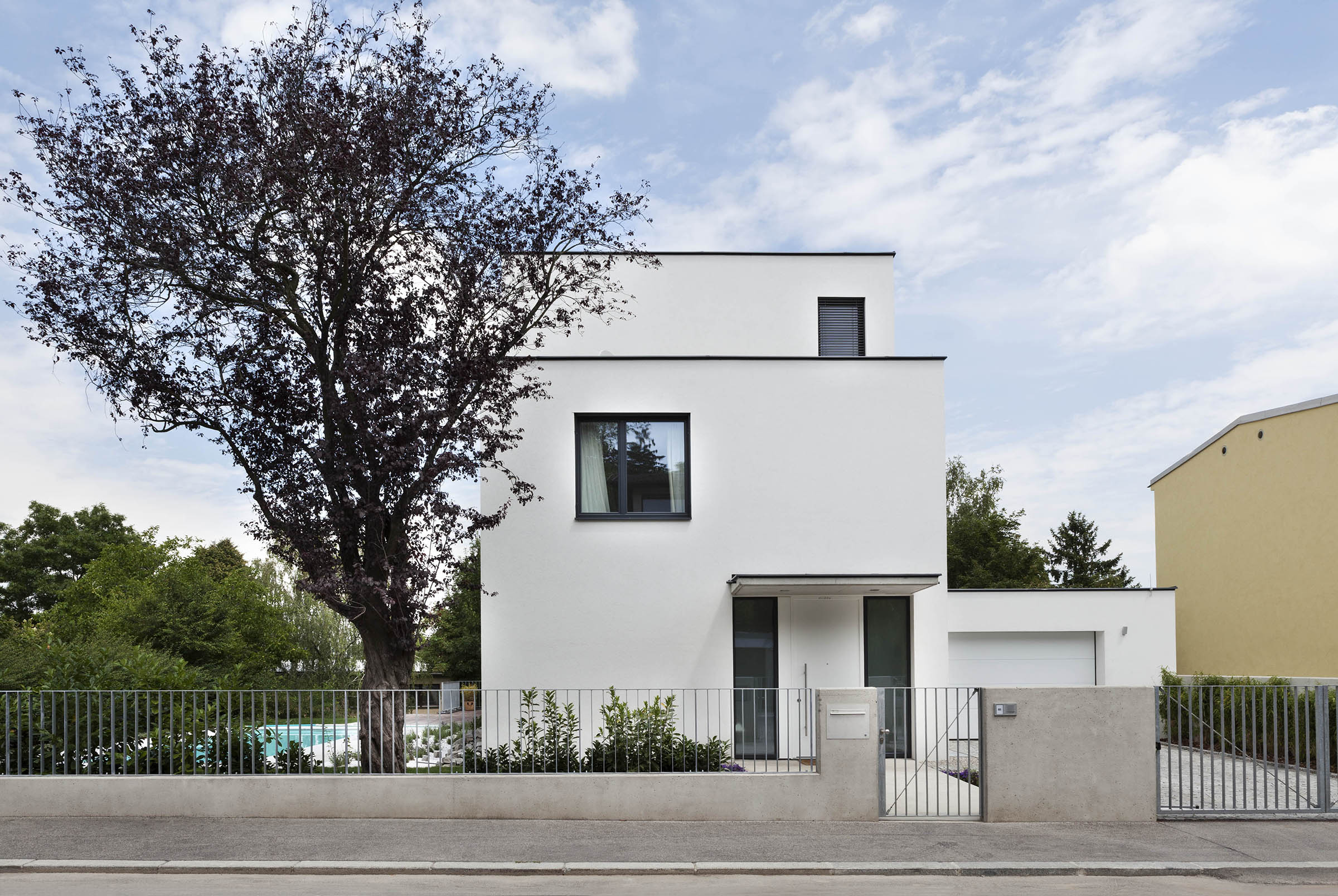 This is a terrace house in the best Viennese tradition. Instead of remodelling a longitudinal Altbau (prewar building), it was decided to do a new construction across the lot. The narrow floor plan of the house made room for a garden with pool on the side of the building. The generous living area on the ground floor, which opens to the garden with glass walls, is connected to the four bedrooms by a stairway on the side. On the top, there is a “lookout” with terraces. The windows have dark frames and smooth plaster surfaces, and together with the flat roofs create a calm and balanced exterior within the sense of the Viennese Classical Modernism of the interwar period.
