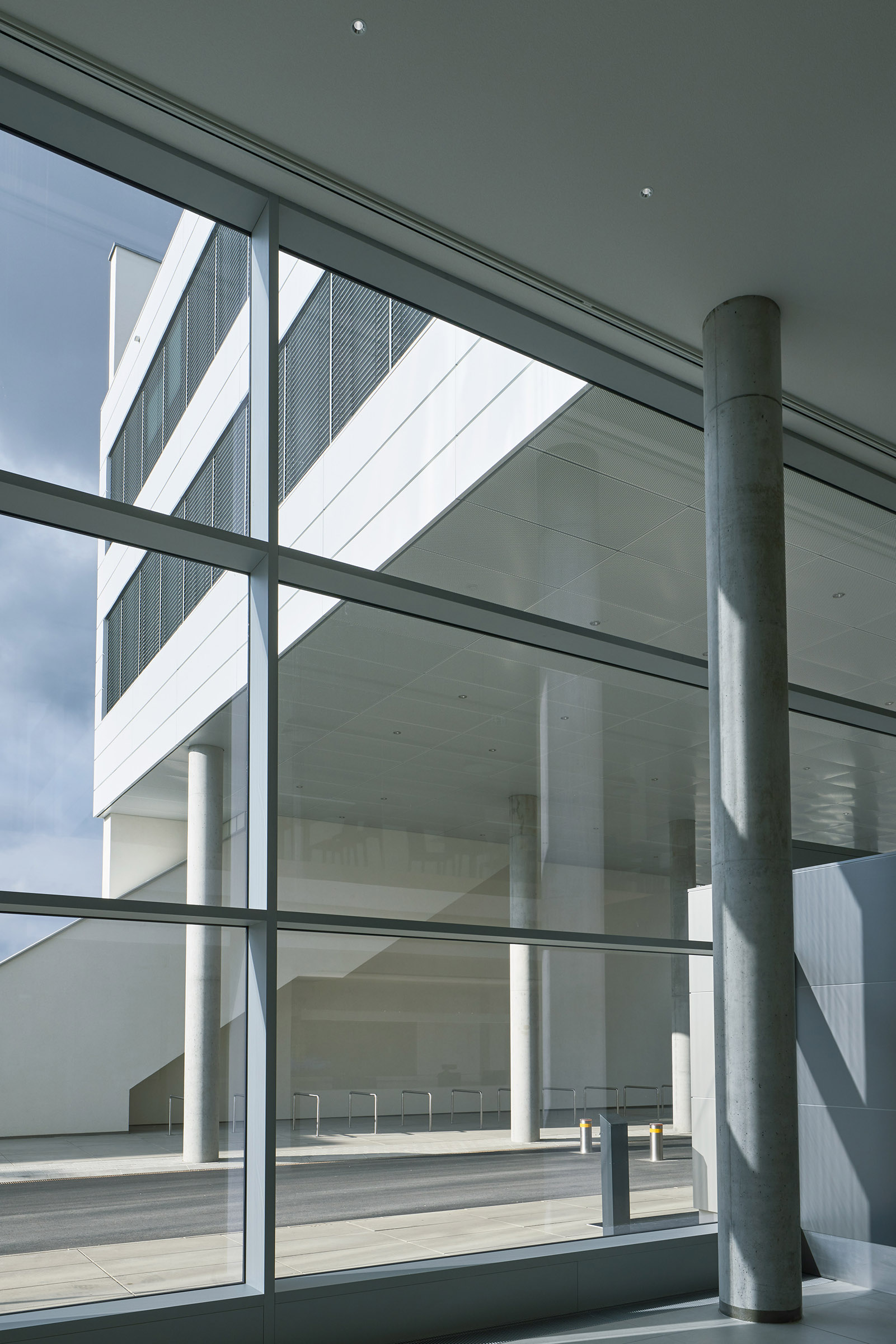 The new structure for a staff of 300 has an L-shaped floor plan and is designed towards the depth of the lot, so that an access path could be planned under the driveway. The generous, glass-walled foyer, over which the upper levels of the street frontage seem to float, was moved to the facade as an eyecatcher, but also in order to keep traffic noise from the heavily frequented Wienerbergstrasse away from the offices. The cafeteria was placed on the gallery of the foyer, as a “floating cube”. Continuous parapet bands give the building a functional but modern flair and emphasize the building’s sense of depth.