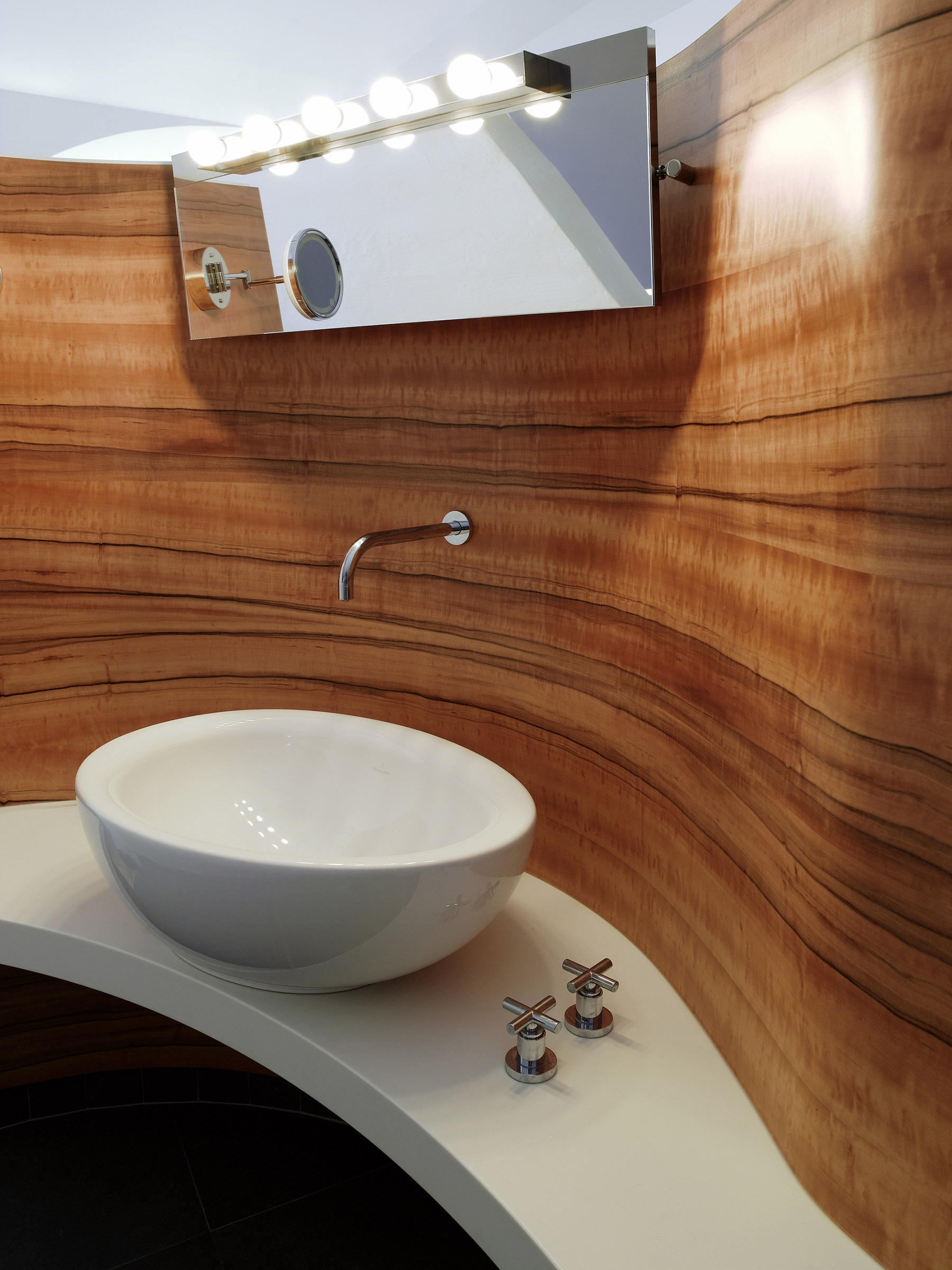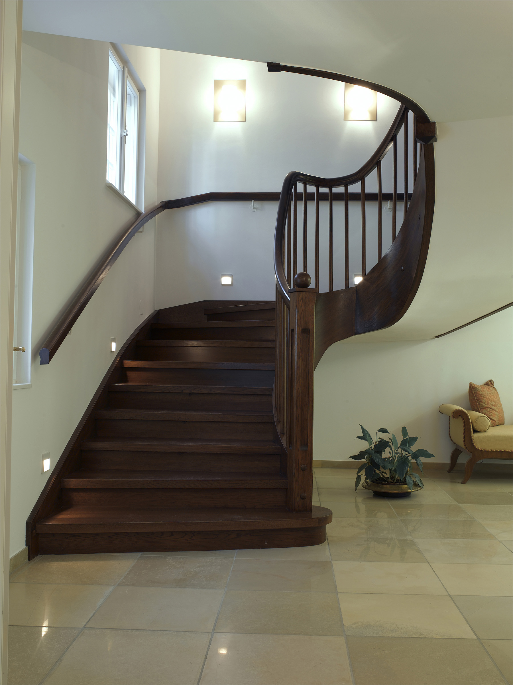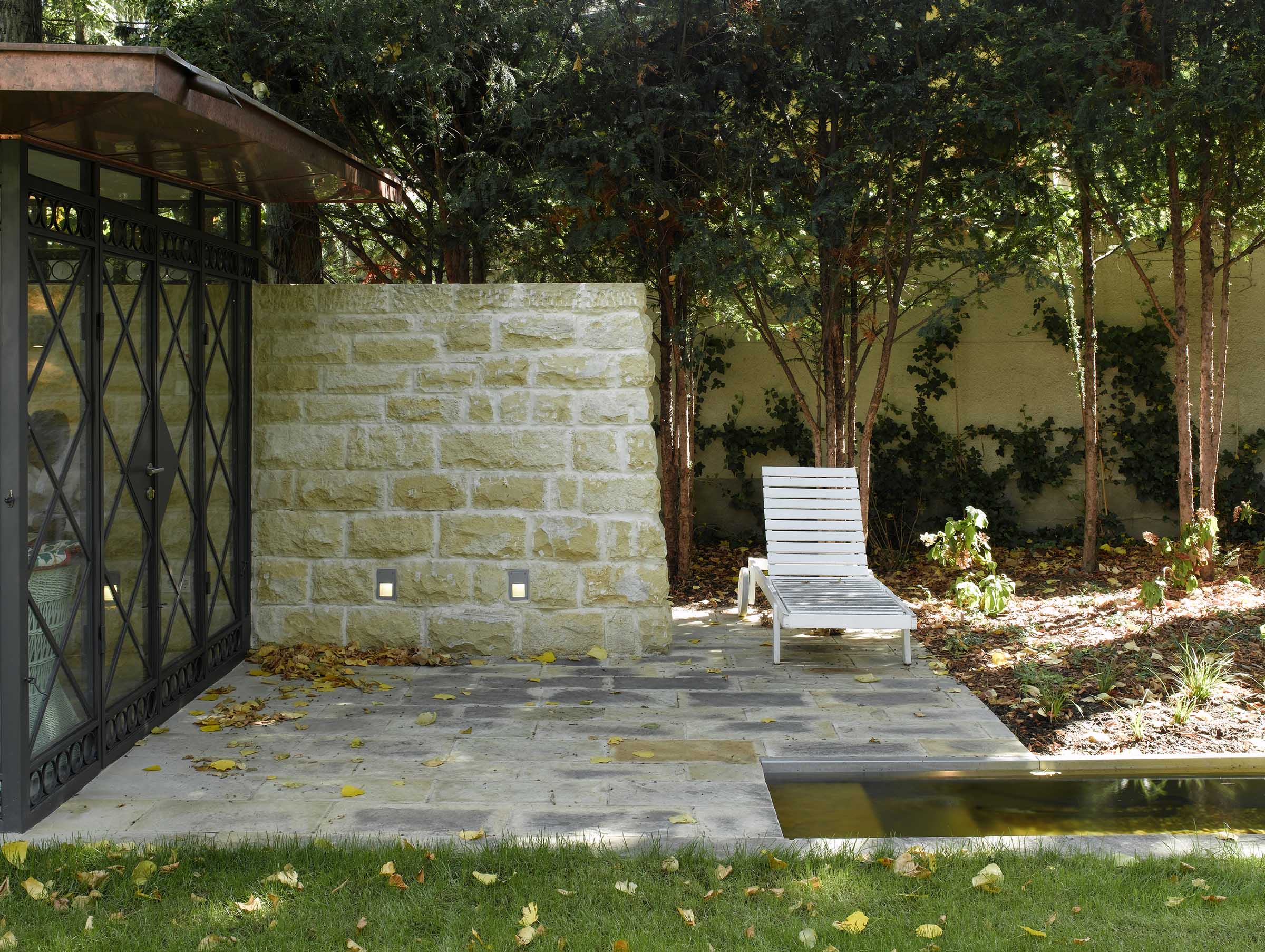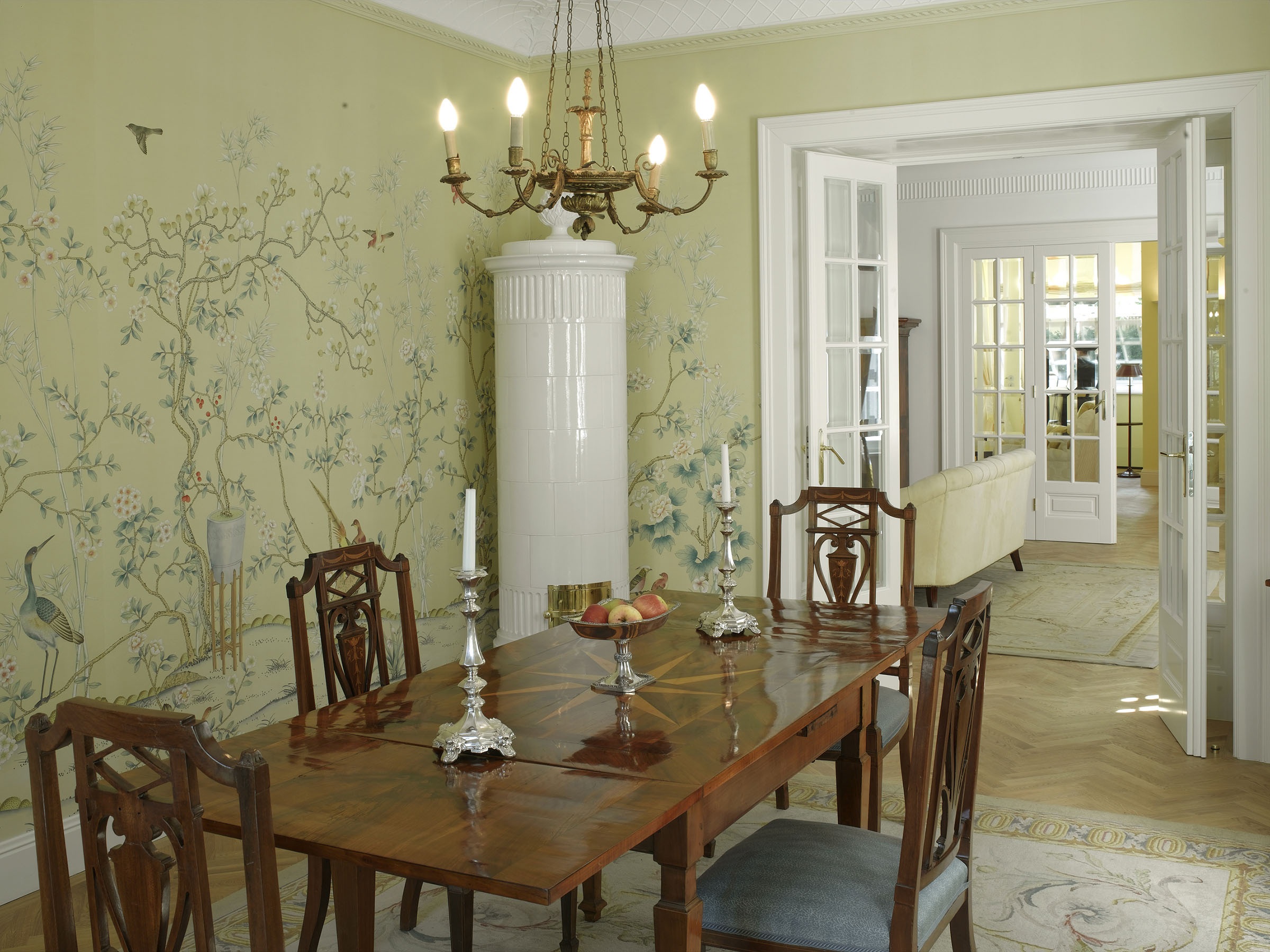 A villa adapted for office purposes was restored to residential use. An eccentric detail, the garage behind the facade, was rebuilt. The installation of a glass wall produced a ground-level axis view through the entire house into the garden. The constructional closing of a loggia solved structural problems of lighting and floor plan. From here, you also have a view of the new garden pavilion at the end of the garden.