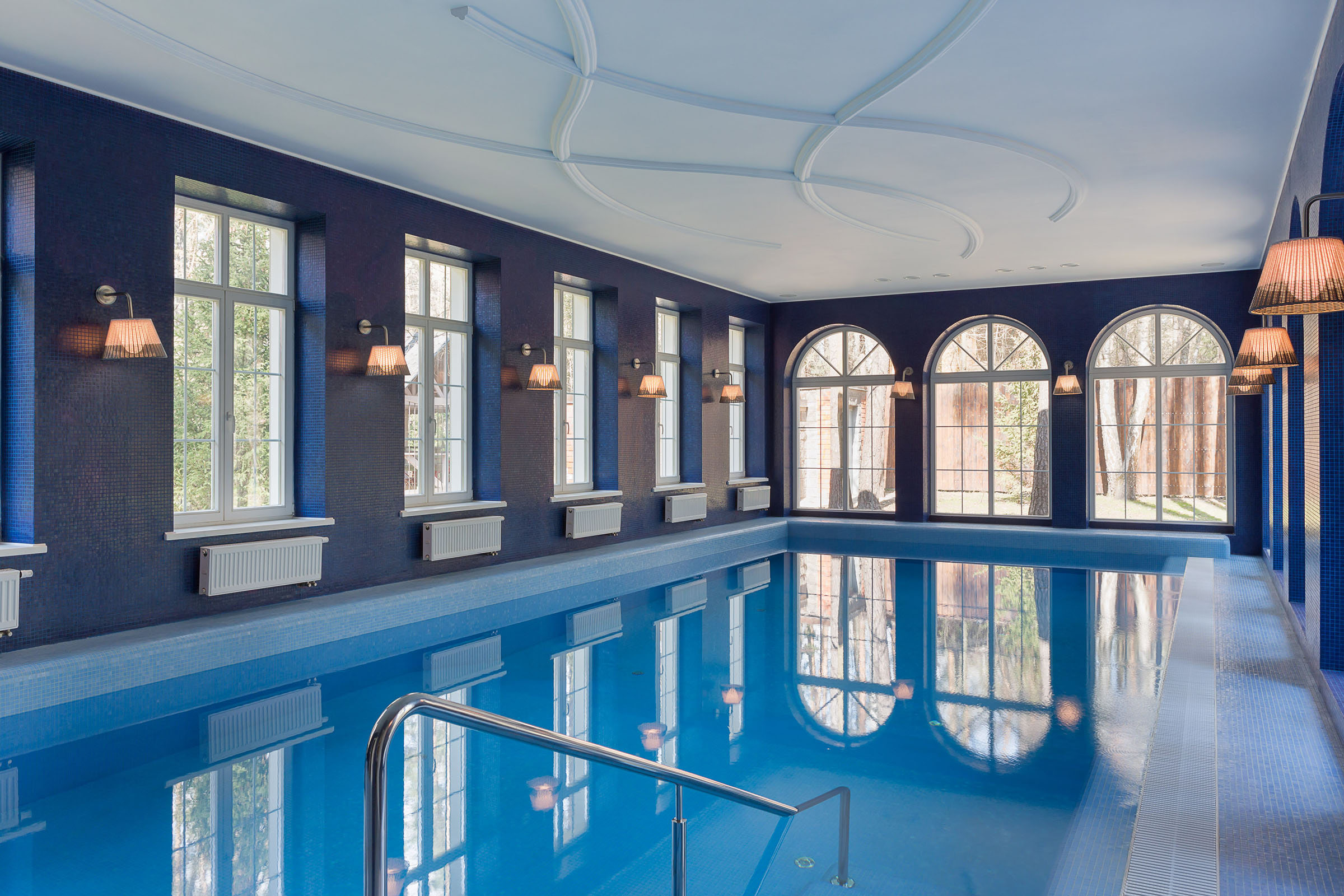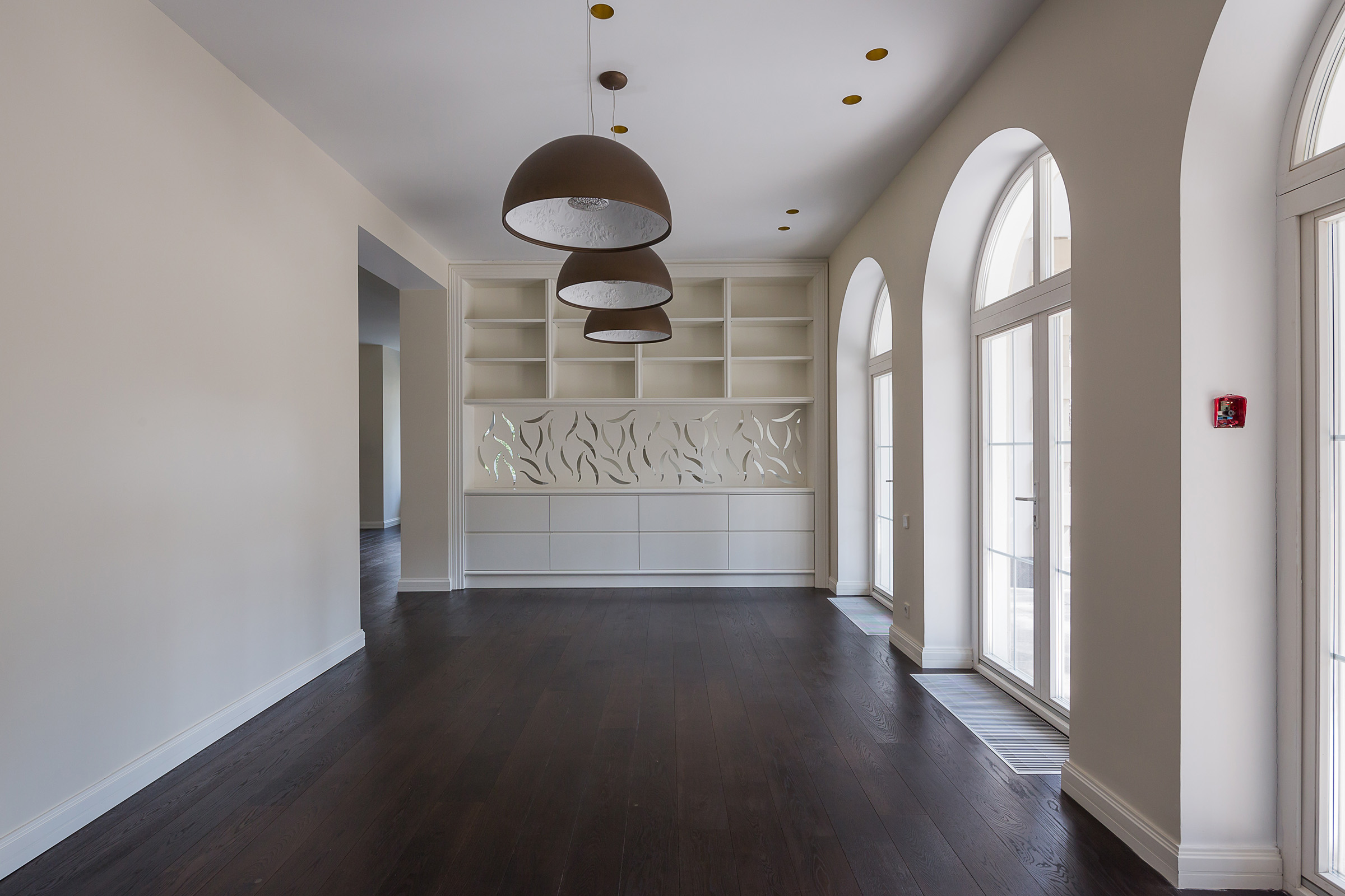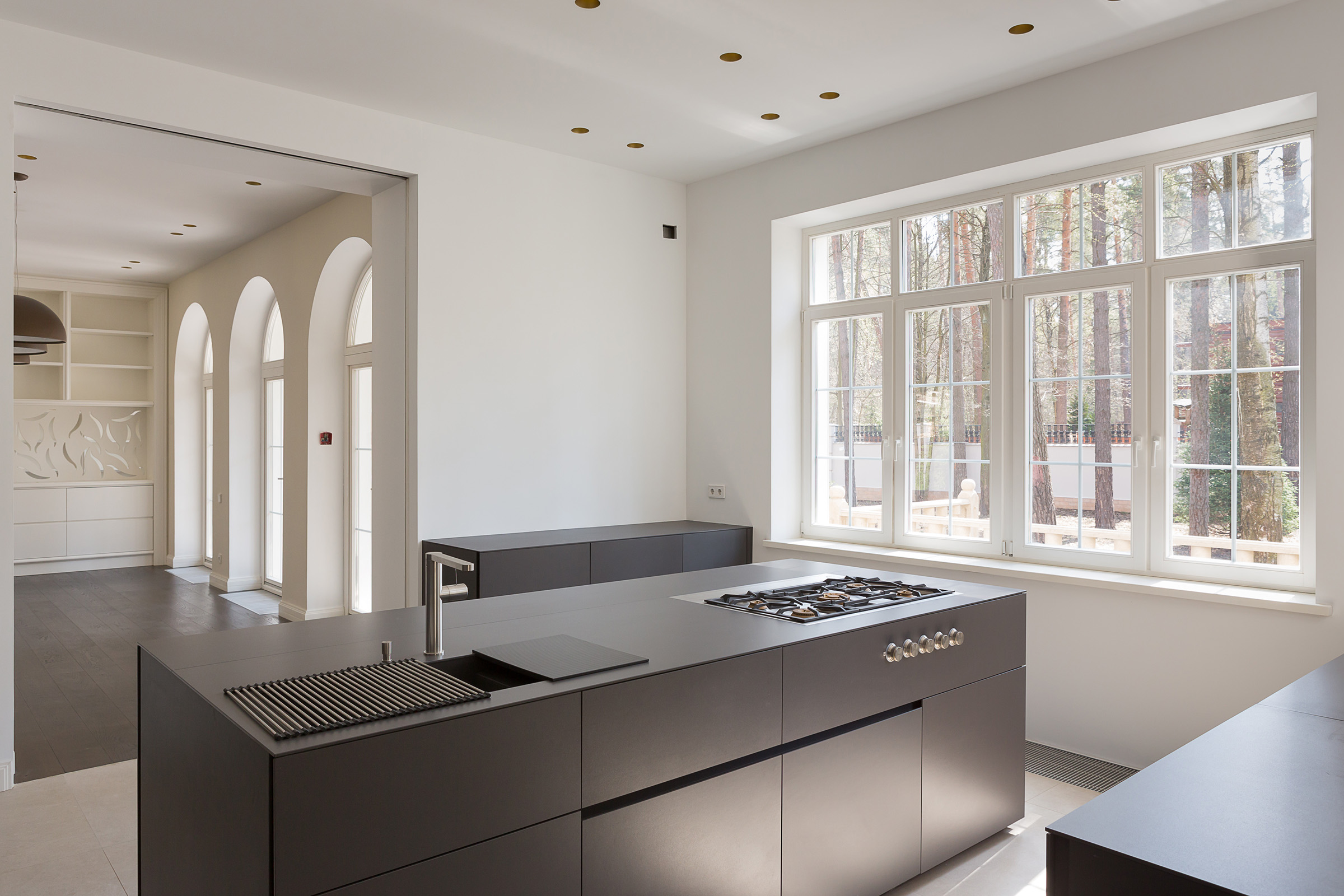 A villa was completely refurbished. The cellar now contains an extensive spa area, the main floor is dominated by a large open-space living hall with defined spaces for dining, sitting, and library. Several terraces provide direct access to the garden. The bedrooms on the second level are designed as suites with separate bathrooms, and the top-level features guest rooms, a cigar lounge and a movie theatre. Bright, friendly and generous, the ambiance benefits from specially designed furniture. The Bisazza-tiles in the wetrooms, also designed by Atelier Heiss, give the house an individually luxurious touch.