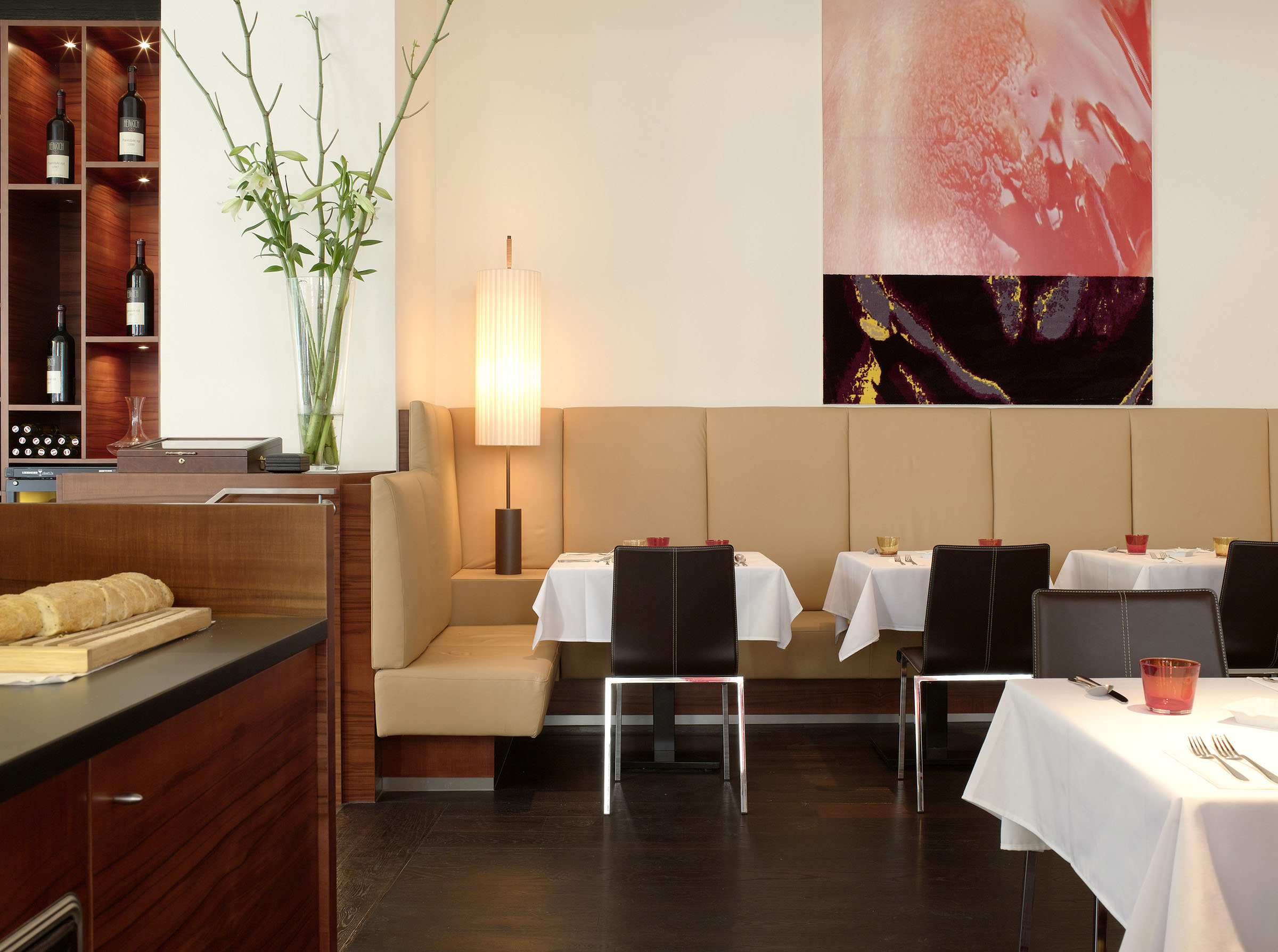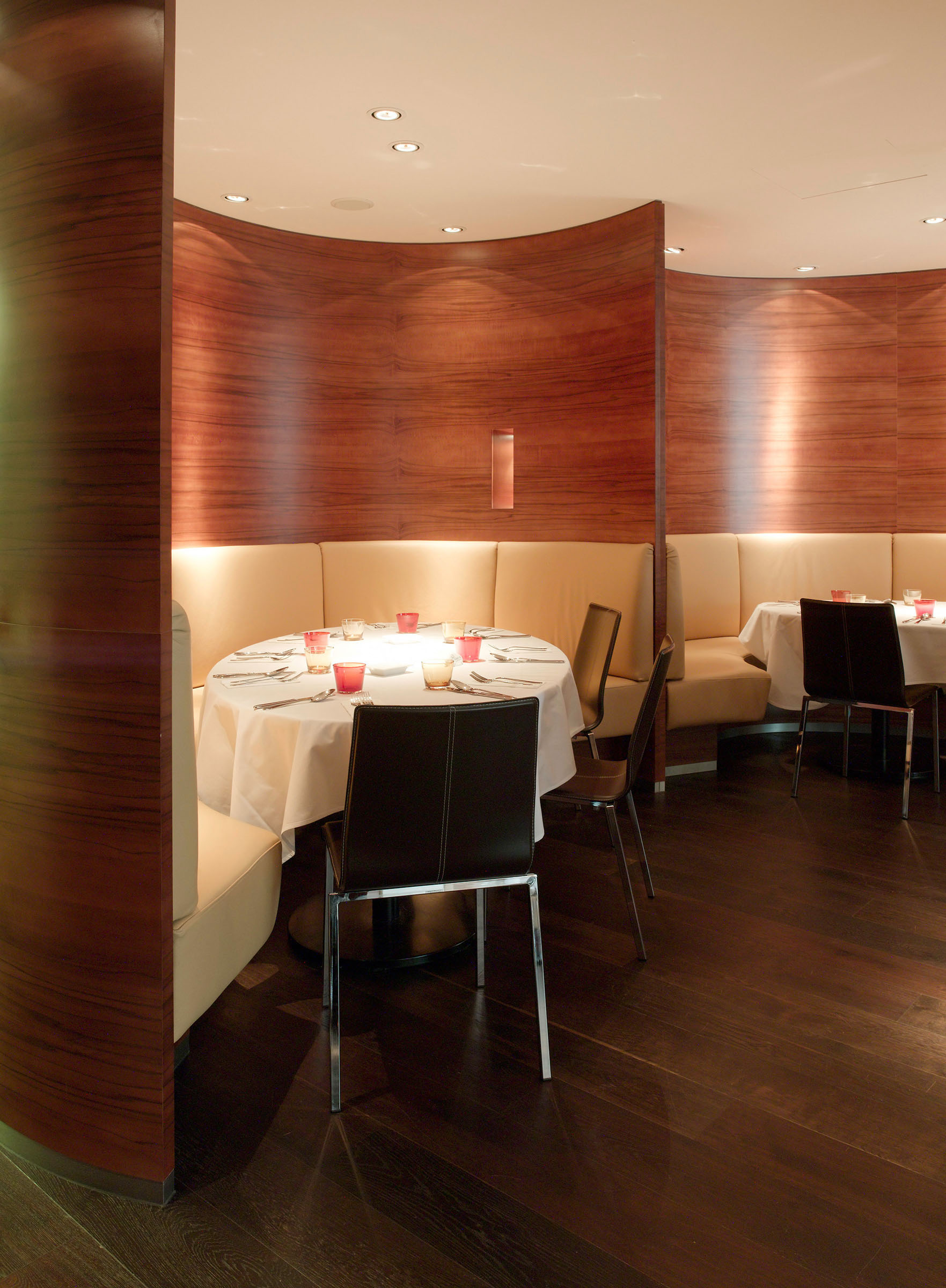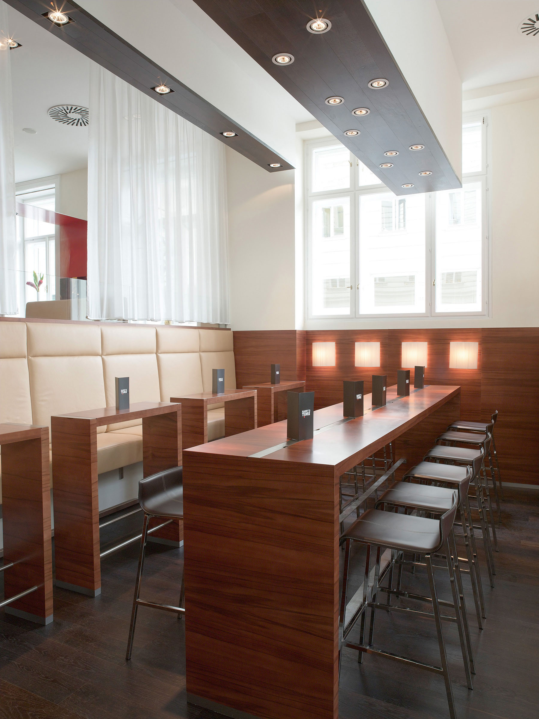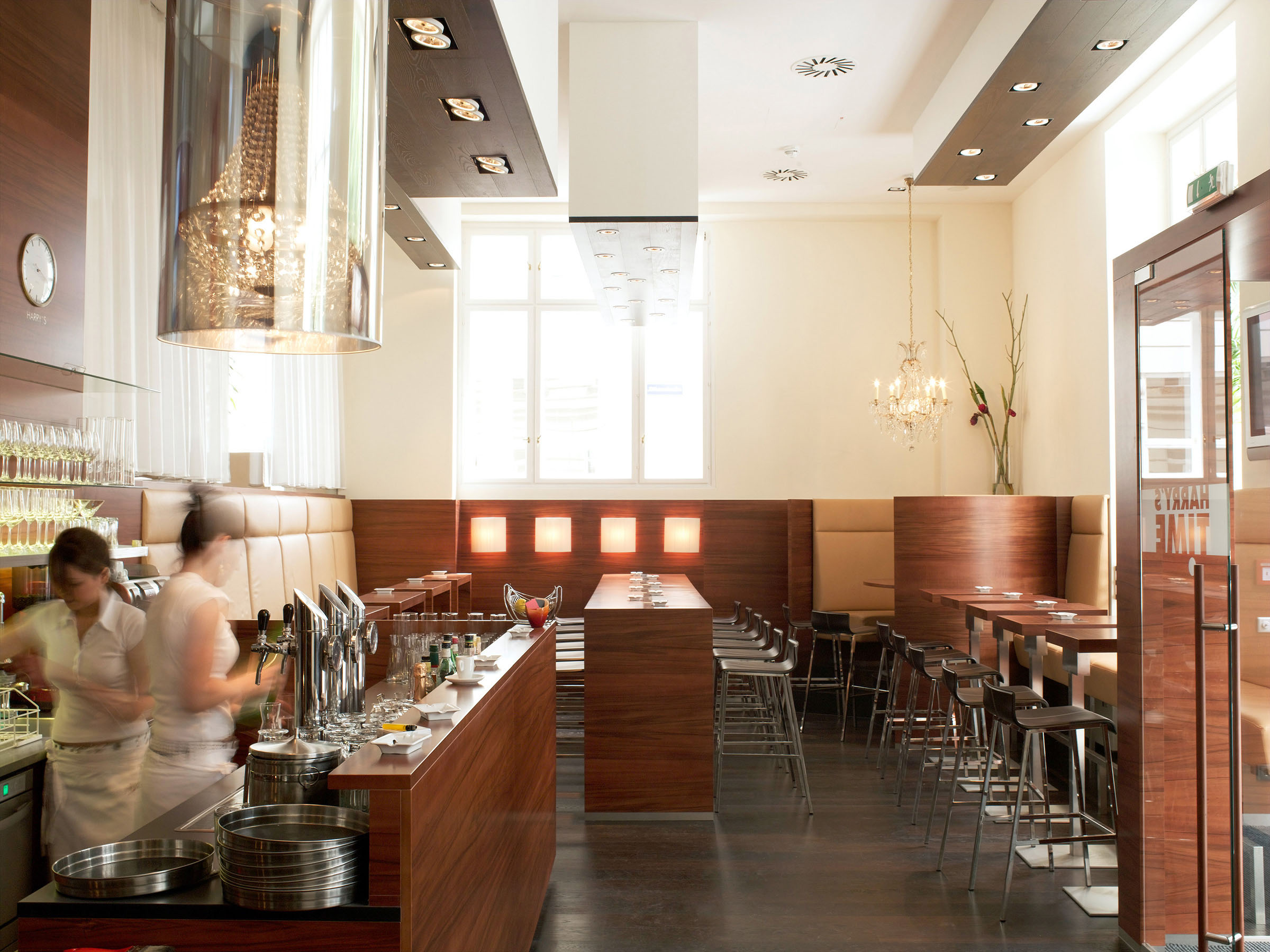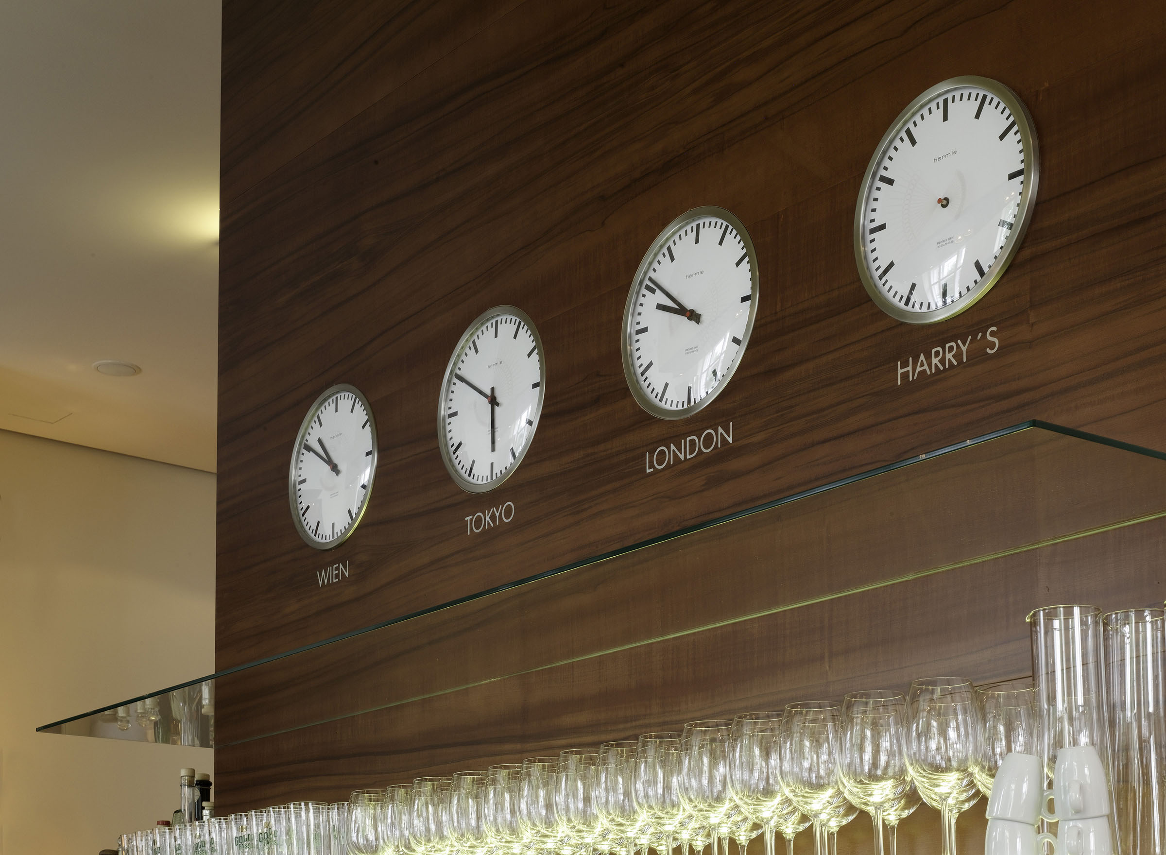 „Harry‘s Time“ erfüllt alle funktionellen Anforderungen eines Restaurants mit Lounge und Bar. Auf den Eingangsbereich mit Bar folgen Restaurant, Separees und (die gesondert begehbare) Küche. Die Bereiche sind durch den Einsatz verwandter Gestaltungselemente an Boden und Decken (z.B. Teppich/Baldachin) ausgewiesen. Auf materielle Nobilitierung wurde bewusst verzichtet, die Möbel sind – bis auf die Stühle – ebenfalls Entwürfe des Ateliers Heiss.
