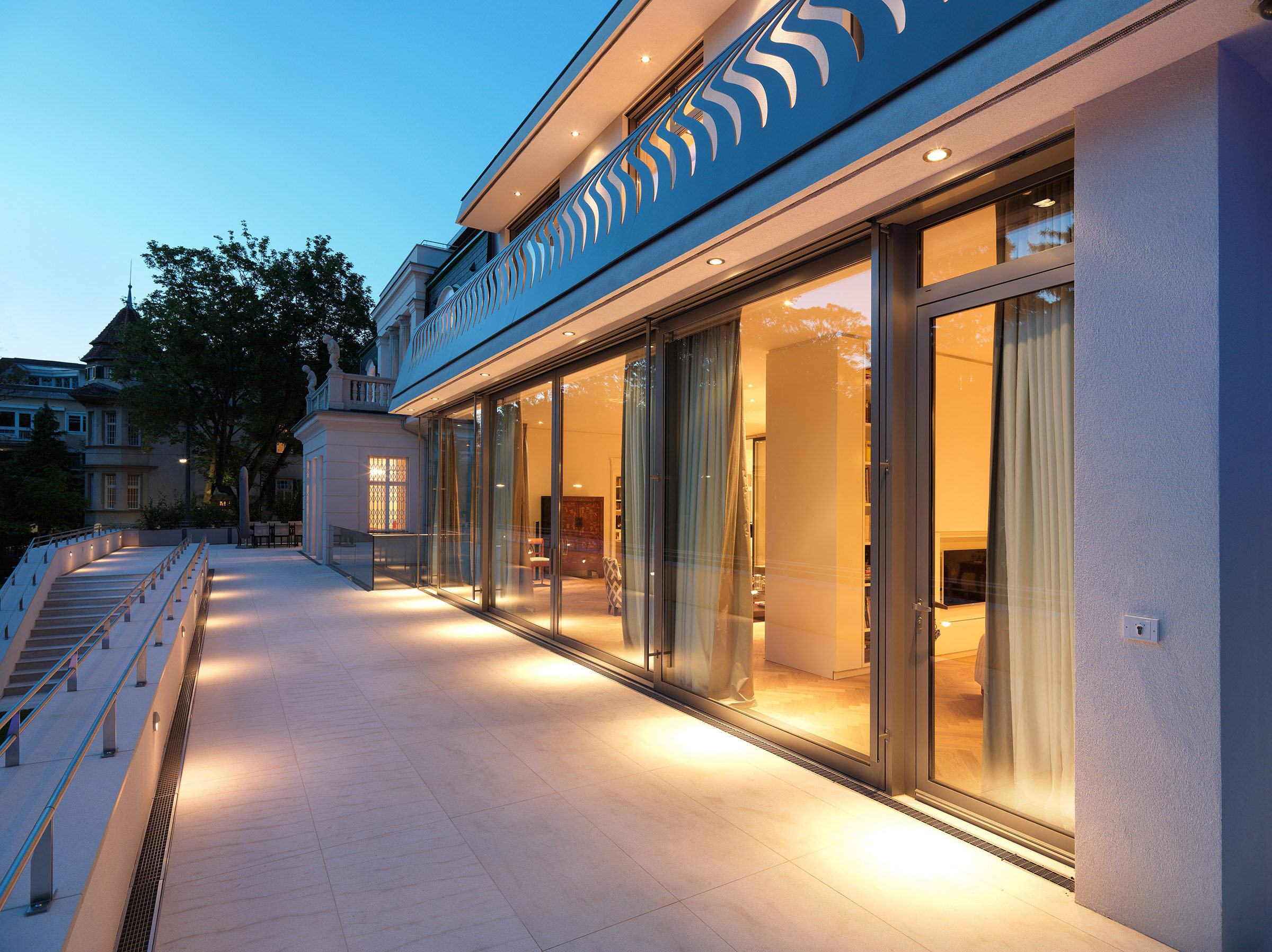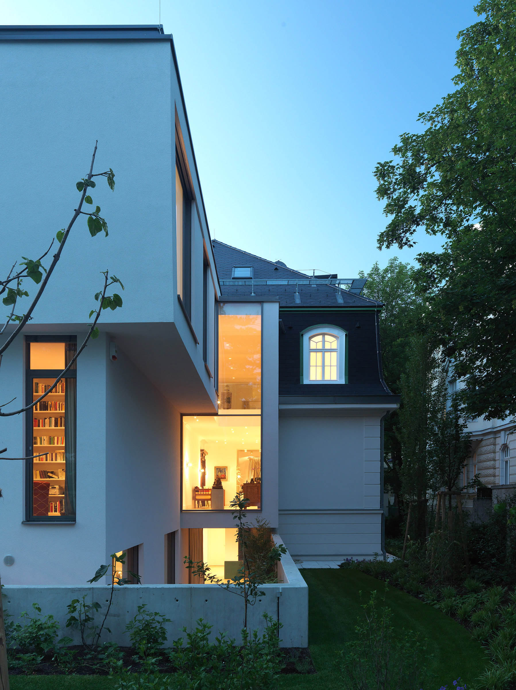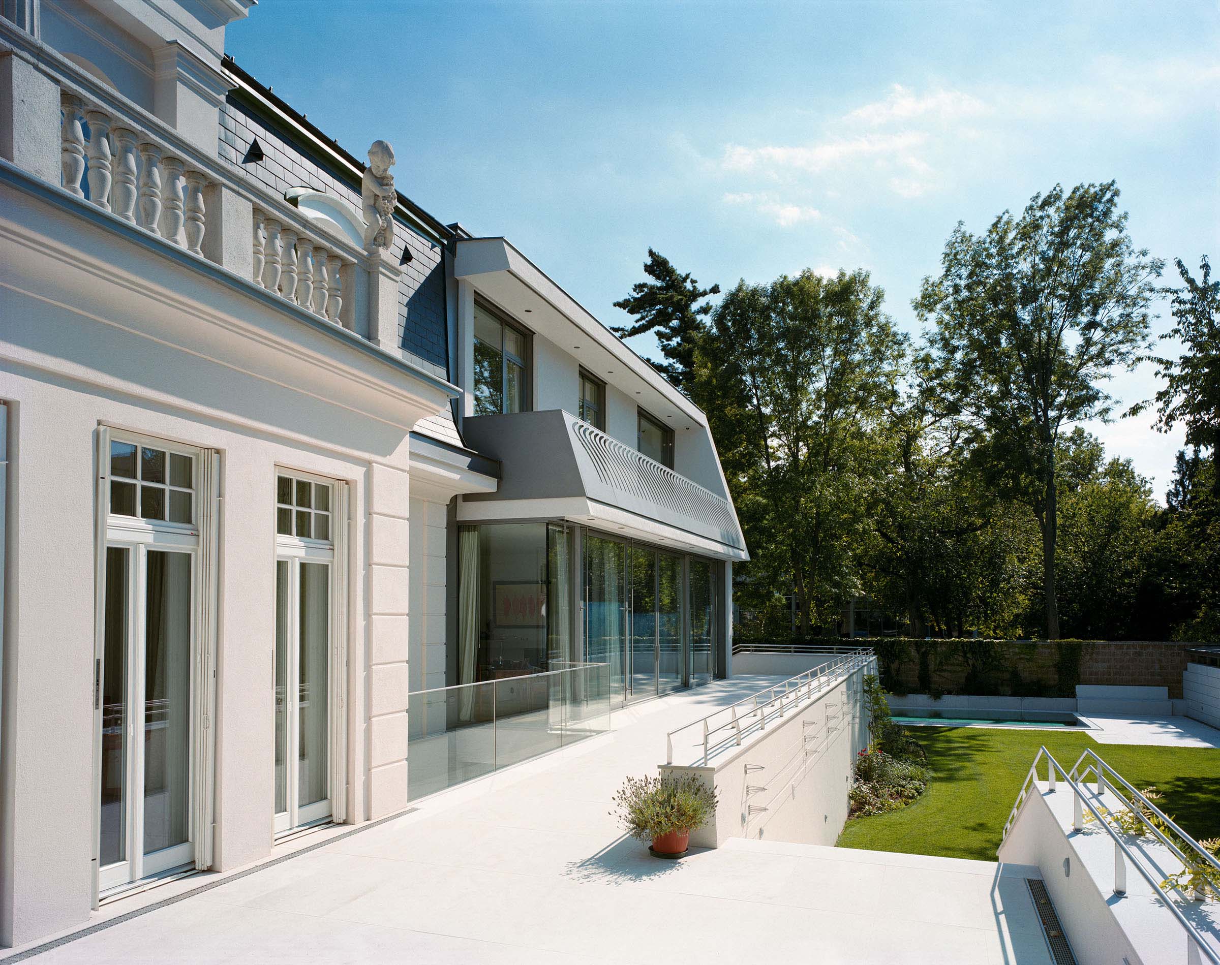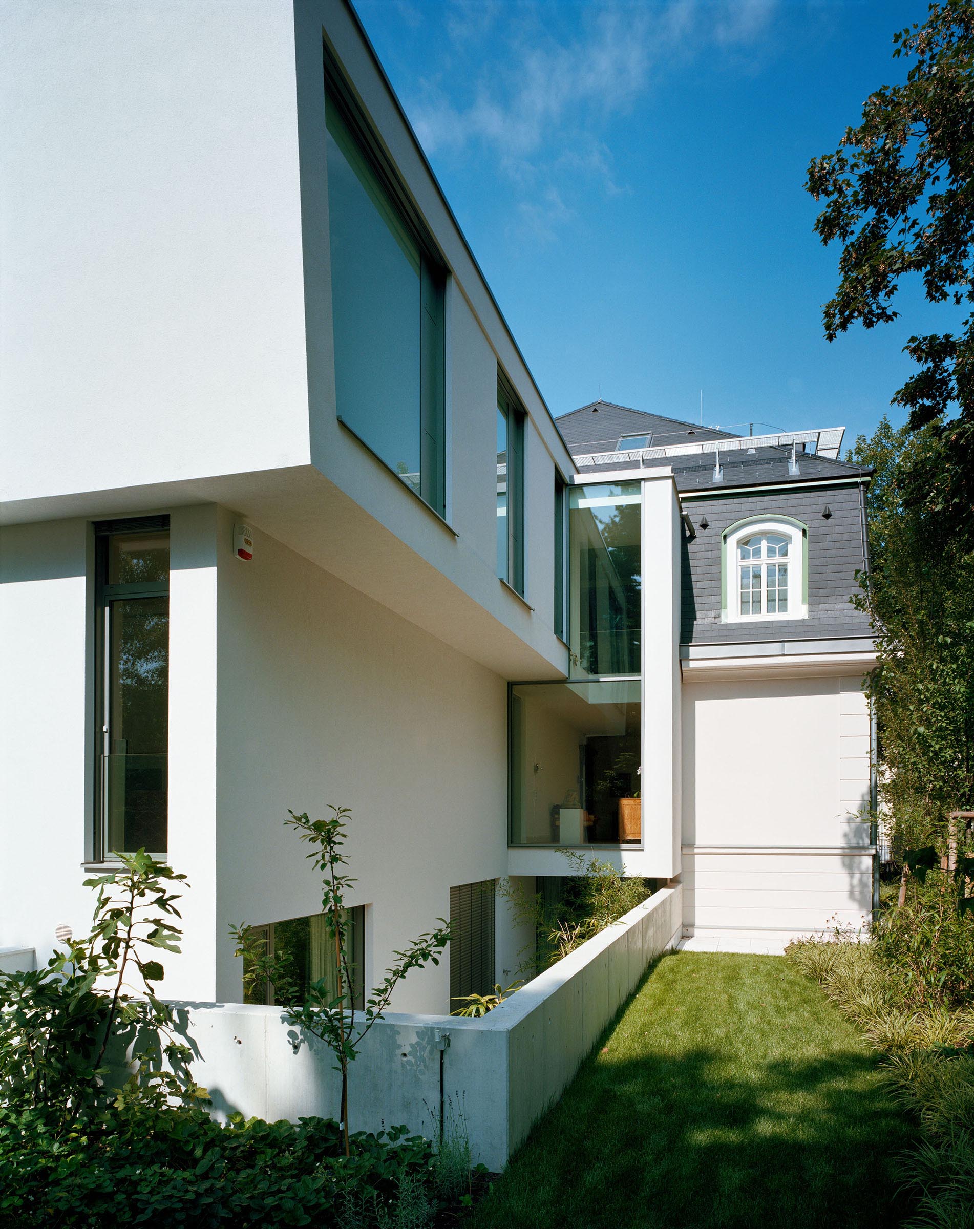 Die komplette Neustrukturierung des Hauses schafft ein neues Raum- und Wohngefühl. Ein Zubau wurde abgebrochen und neu errichtet. Zu den Highlights des Umbaus zählen das neue Treppenhaus und die großzügige Eingangshalle. Eine Textzeile aus dem Lieblings-Chanson der Bauherrin war der Ausgangspunkt für eine sehr persönliche Symbolik, deren Leitmotiv mehrfach an der Geländer-Elementen zum Einsatz kam.
